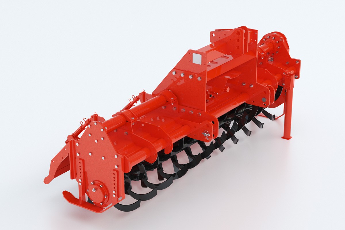 1GQ旋耕機配套動力50-120馬力,特殊設(shè)計的旋耕刀具有穩(wěn)心大、碎土碎茬埋茬性能好,作業(yè)阻力小、耐磨,旋耕刀按螺旋線對稱排列,作業(yè)中保持整機穩(wěn)定平衡。在不同工作條件下選配不同刀軸可得到良好的作業(yè)時效,刀軸刀盤采用圓盤式設(shè)計,具有良好的抗纏草能力;側(cè)傳動箱采用整體箱體設(shè)計,保證側(cè)箱齒輪傳動更加可靠;